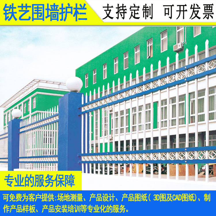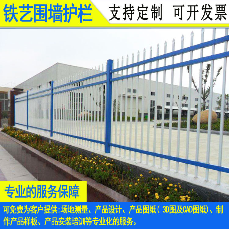 热镀锌方管栏杆 佛山焊接工业园围墙防爬栏杆 汕尾蓝色学校围栏